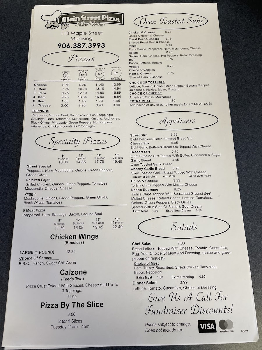 Welcome to Main Street Pizza - Munising, a culinary gem located at 113 Maple St in picturesque Munising, MI. Known for their delicious, high-quality pizza and warm service, this eatery is a must-visit for both locals and travelers alike.